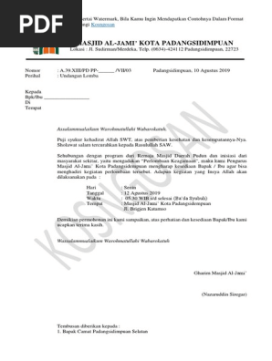 Doc Contoh Surat Undangan Dkm Masjid Tirta Handyan