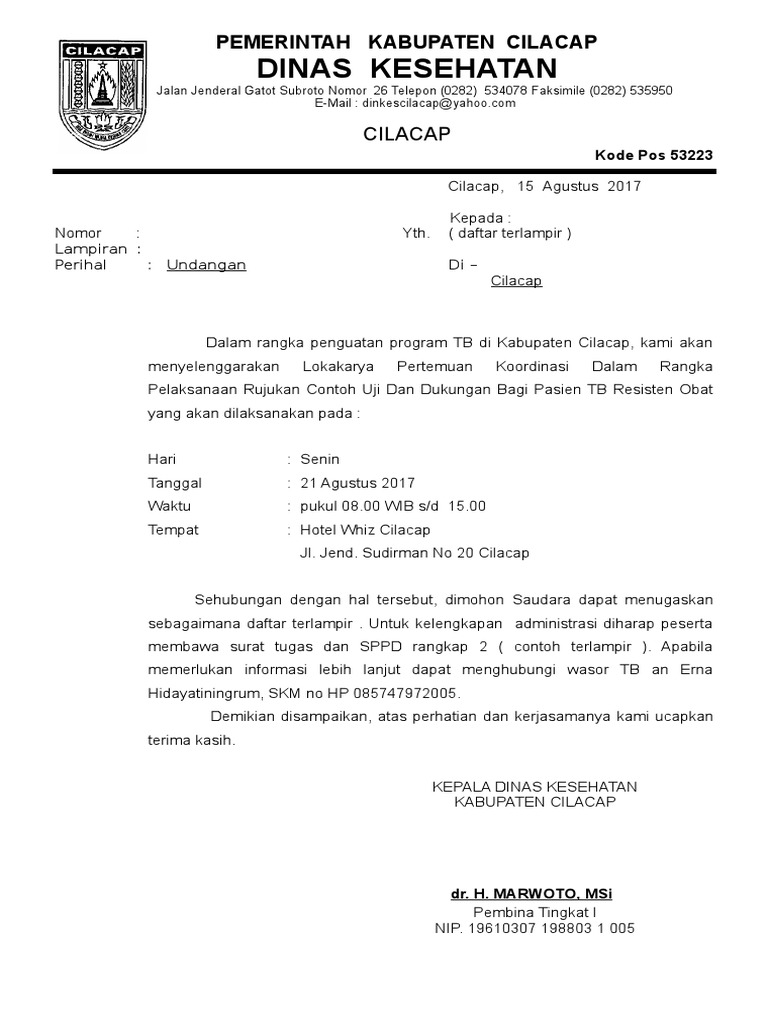 Contoh surat undangan resmi dinas kesehatan. Itulah contoh contoh surat undangan rapat dinas yang resmi dan benar yang telah kami sediakan sebagai referensi untuk anda. Contoh surat resmi surat resmi adalah surat yang digunakan untuk sesuatu urusan yang sifatnya resmi baik itu untuk perseorangan instansi maupun organisasi. Semoga setelah membaca artikel ini bisa menambah pengetahuan dan wawasan anda mengenai surat dinas.