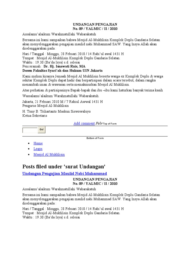 Contoh Undangan Resmi Maulid Surat Rasmi Ra