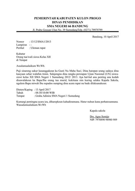 Contoh Surat Undangan Rapat Wali Murid Tentang Ujian Nasional Doc
