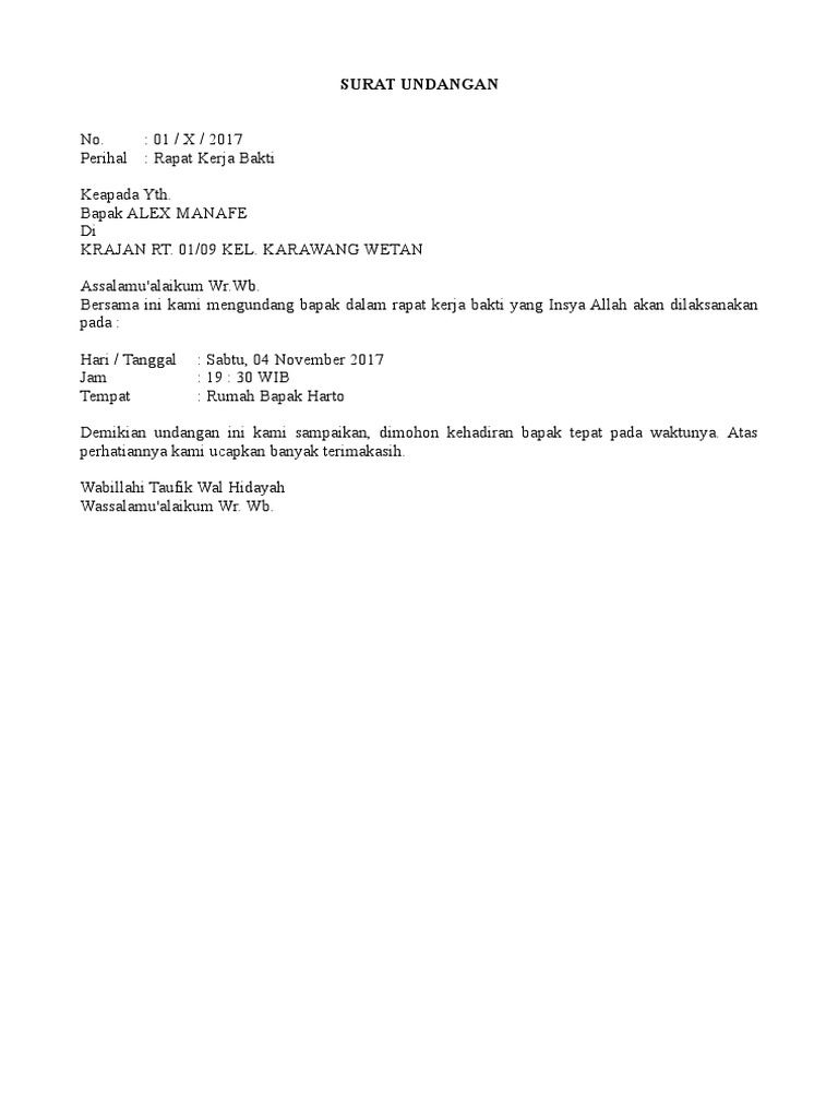 Contoh Surat Undangan Kerja Bakti Lingkungan Rt Singkat Yang