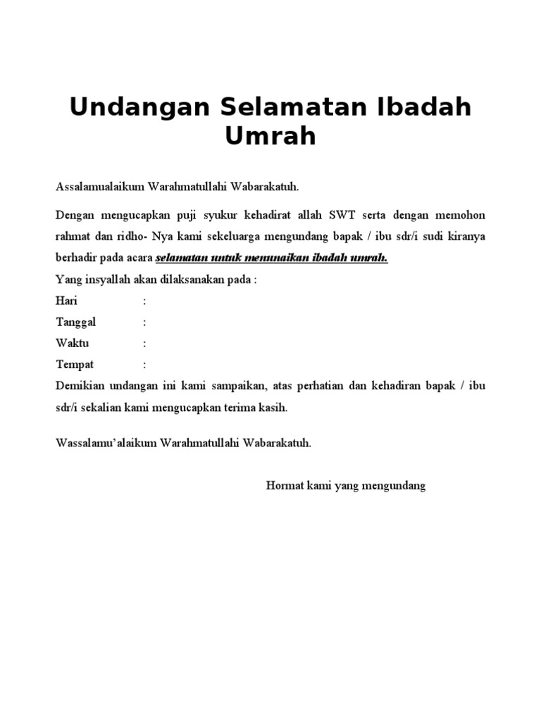 Contoh Undangan Umroh Berita Umroh Haji Umrohhajinews Com