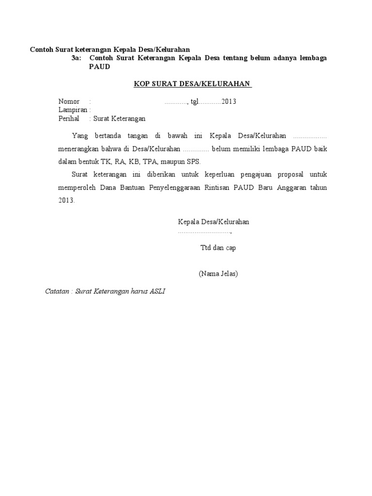 Contoh Surat Keterangan Kepala Desa