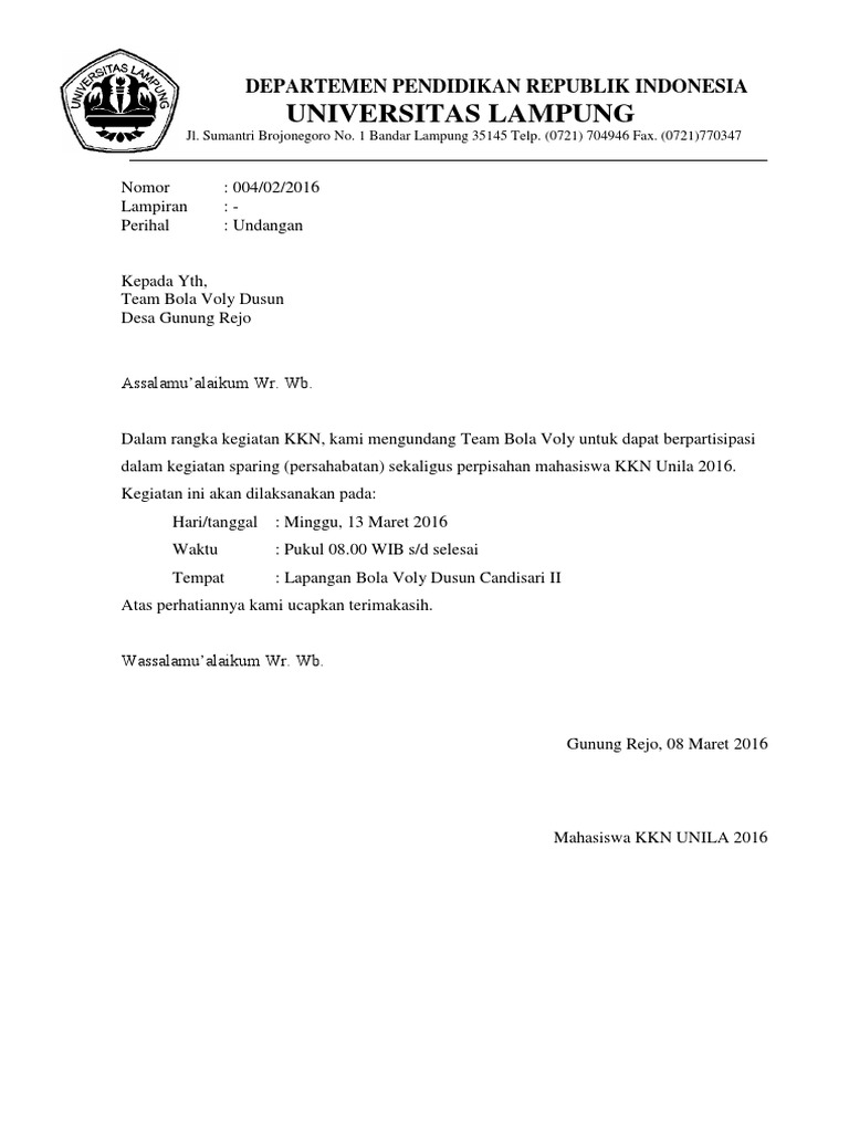 7 Contoh Surat Undangan Kegiatan Resmi Non Resmi Yang Baik