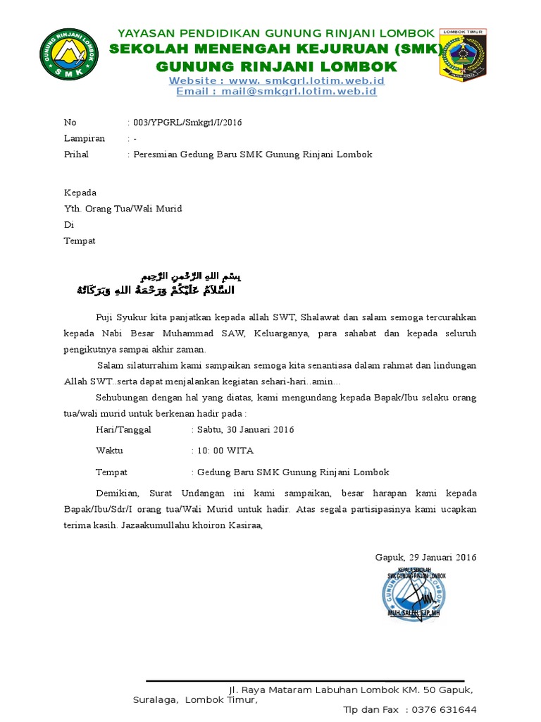 Surat Undangan Orang Tua Wali Siswa Baru Library Pendidikan