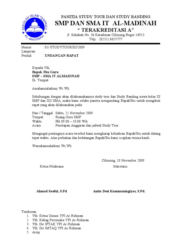 Contoh Pembuatan Undangan Rapat Sekolah Dan Orangtua Wali