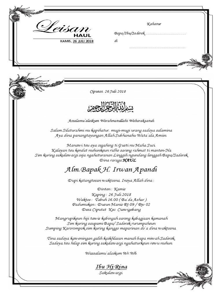 Surat Undangan Syukuran Dalam Bahasa Sunda