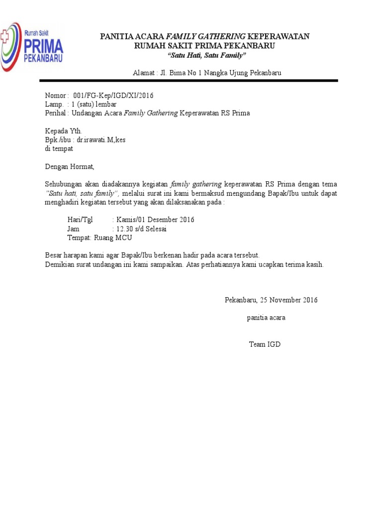 Contoh Surat Pemberitahuan Kegiatan Family Gathering Doc