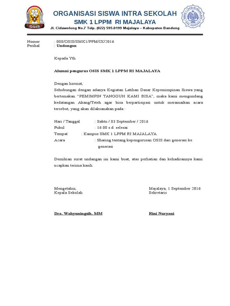 Contoh Surat Undangan Resmi Osis Surat Box Miegames