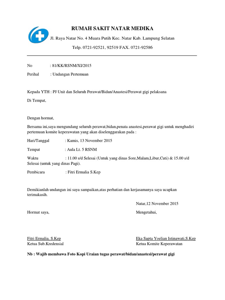 Surat Undangan Rapat Pertemuan Sariati Tudang Academia Edu