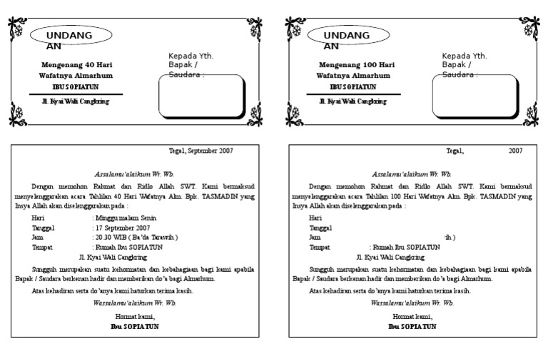 Contoh Undangan Tahlilan 40 Hari Meninggalnya Pdf Document