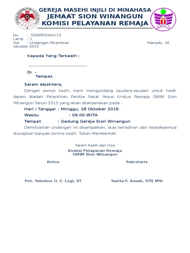 Undangan Pelantikan Panitia Gmim Gereja Masehi Injili Di