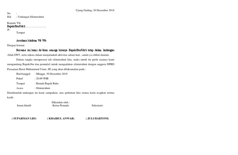Contoh Surat Undangan Silaturahmi Pemuda