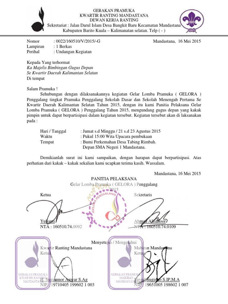 Contoh Surat Permohonan Dan Partisipasi Pramuka