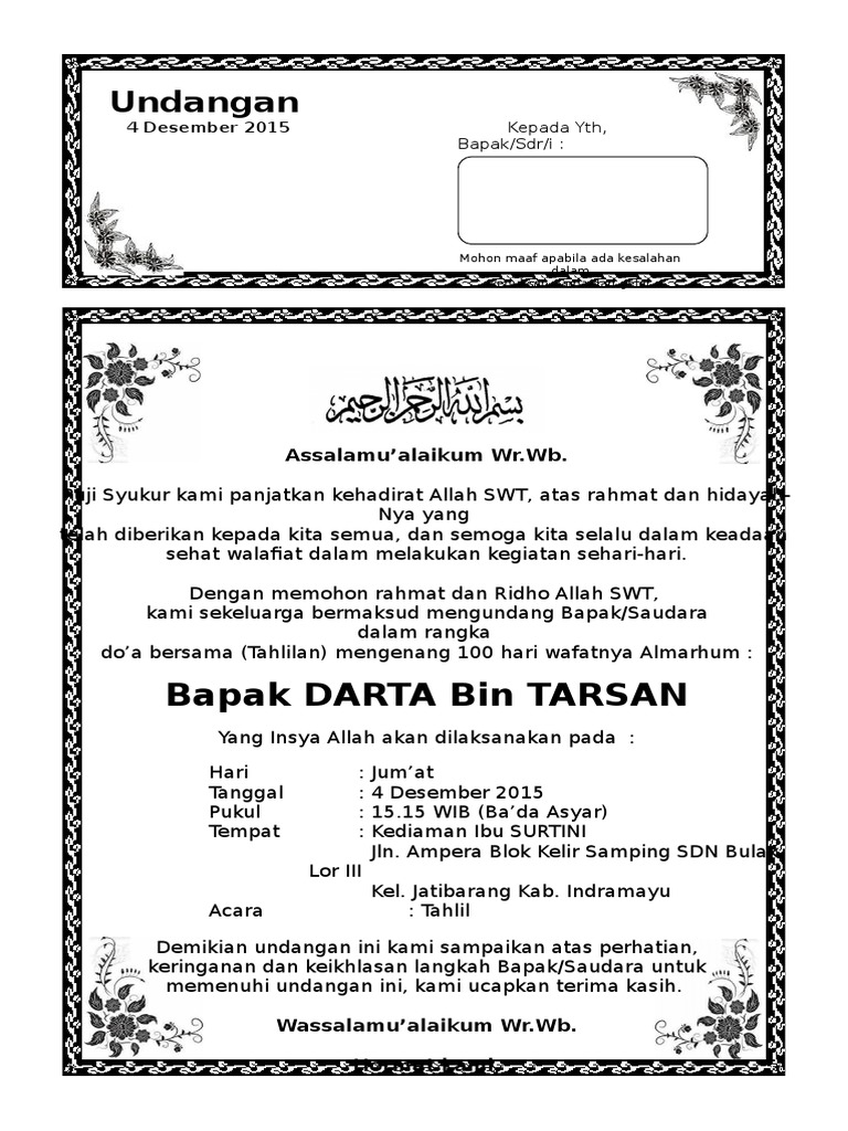 Undangan Tahlilan 100 Hari Meninggalnya Doc Document