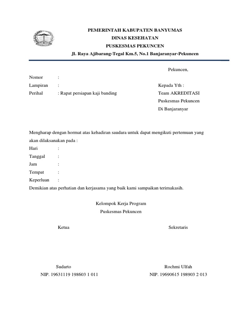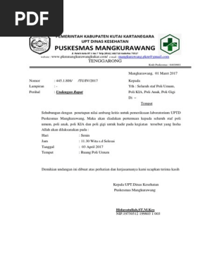 Contoh surat undangan rapat dinas kesehatan. Untuk lebih jelas dalam memahami jenis surat ini maka anda bisa mendownload secara gratis contoh contoh surat undangan. Berikut contoh surat undangancontoh surat undangan rapat contoh surat undangan rapat kerja surat undangan rapat resmi surat pertemuan surat undangan rapat sekolah surat undangan rapatpemandangan yang lain dari biasanya terlihat di puskesmas kecamatan ciracas jakarta timur. Demikian pembahasan kali ini mengenai tentang contoh surat dinas beserta cara pembuatannya.