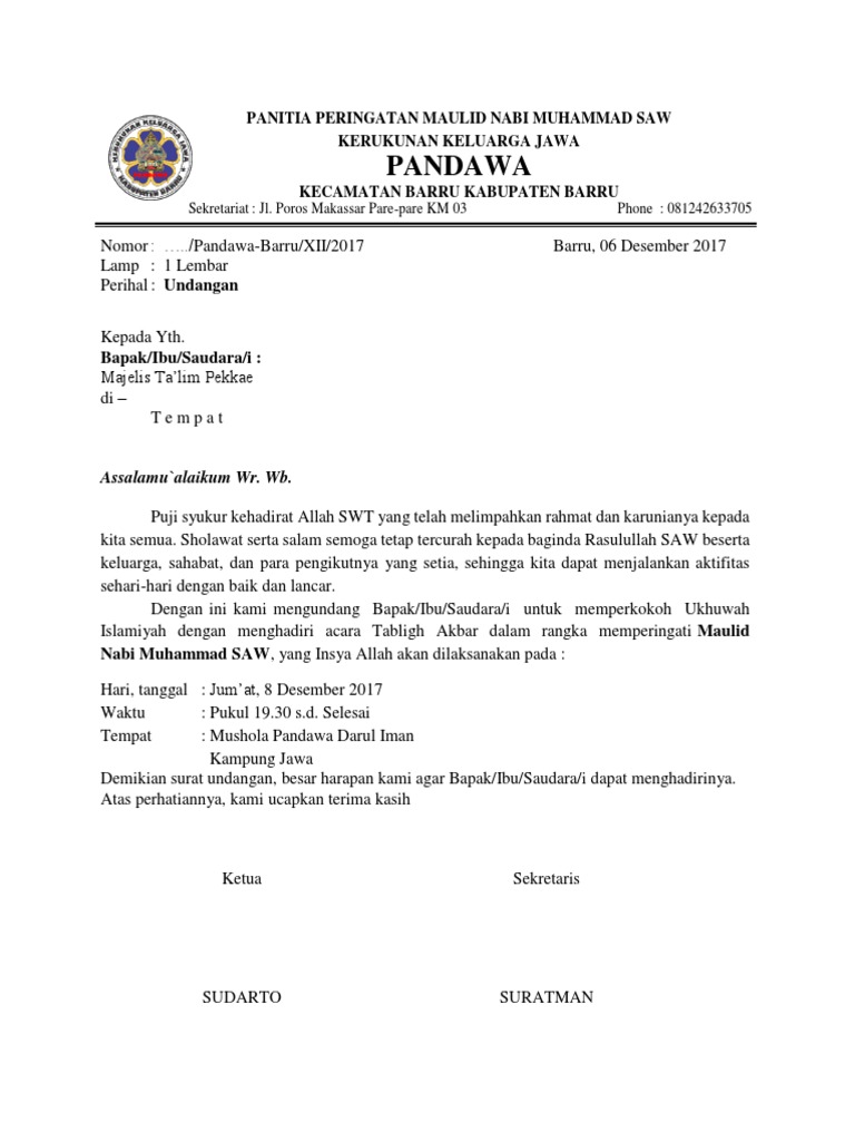 Contoh Surat Undangan Maulid Nabi Doc Surat 25 Miegames