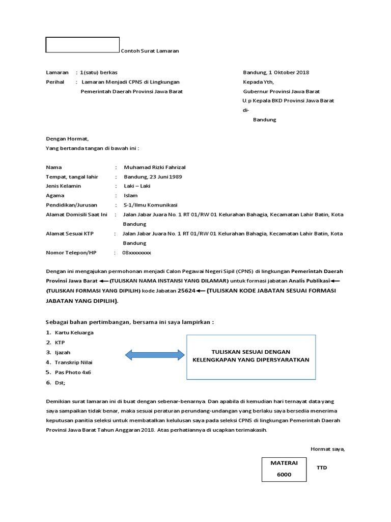 Contoh Surat Lamaran Kerja Ke Instansi Pemerintah Bagi