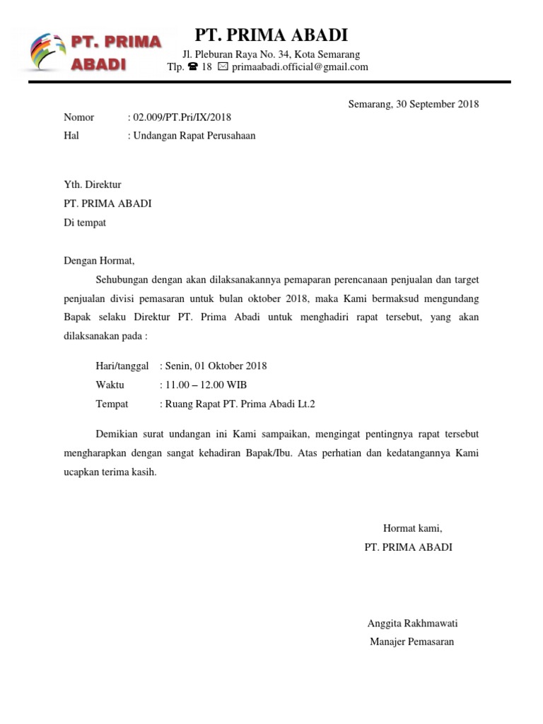 Contoh Surat Undangan Rapat Perusahaan Download Gratis