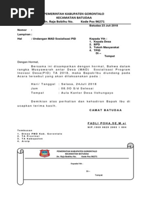 Undangan Rapat Tpid Docx Tim Pelaksana Inovasi Desa Tpid