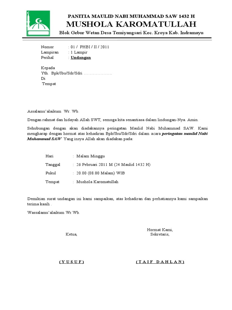 Asli Contoh Surat Undangan Maulid Nabi Yang Sederhana Tapi